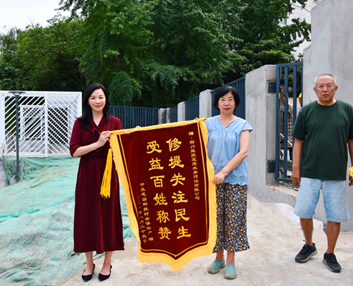 2021年9月6日,武侯區(qū)中亞花園科技村居民代表將一面寫著“修堤關(guān)注民生,受益百姓稱贊”的鮮紅錦旗贈予四川能投宜居水岸建設(shè)有限公司,感謝為保障清水河五大花園段附近小區(qū)居民生命財產(chǎn)安全及打造舒適的生活環(huán)境作出的努力。