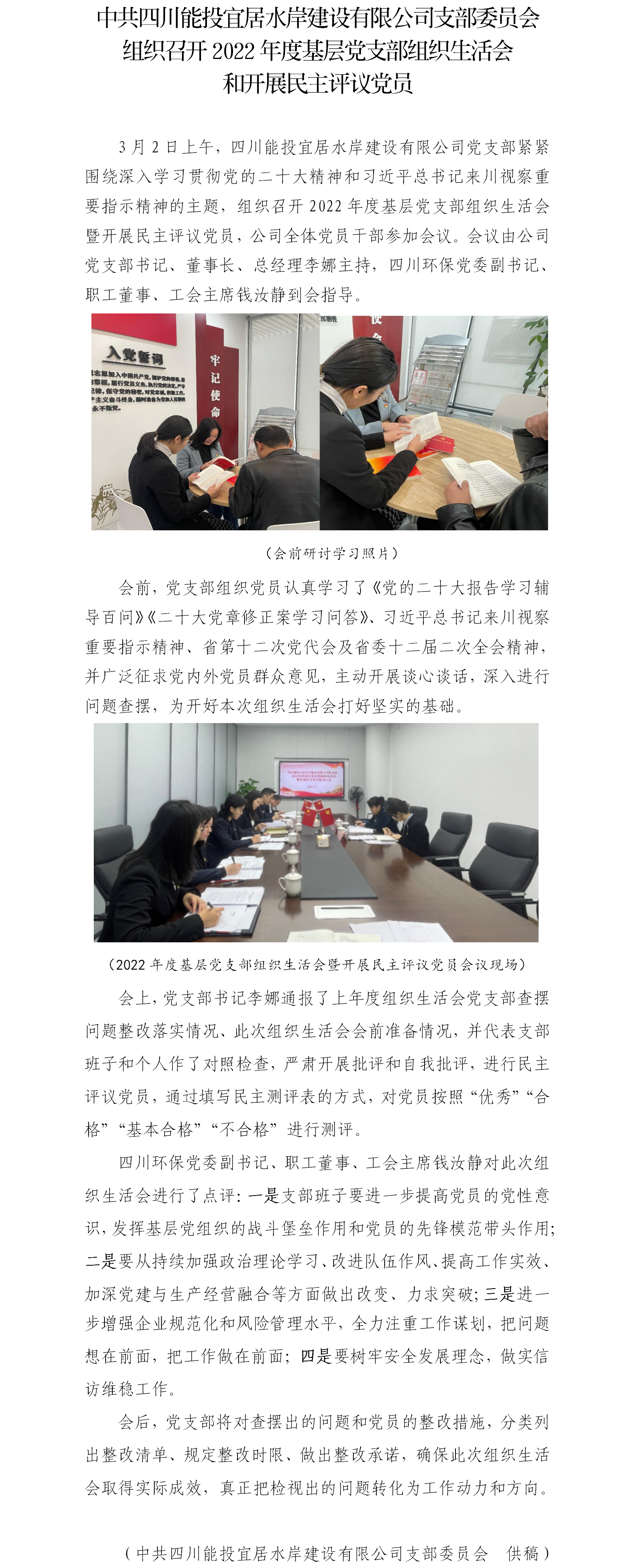 中共四川能投宜居水岸建設有限公司支部委員會組織召開2022年度基層黨支部組織生活會和開展民主評議黨員