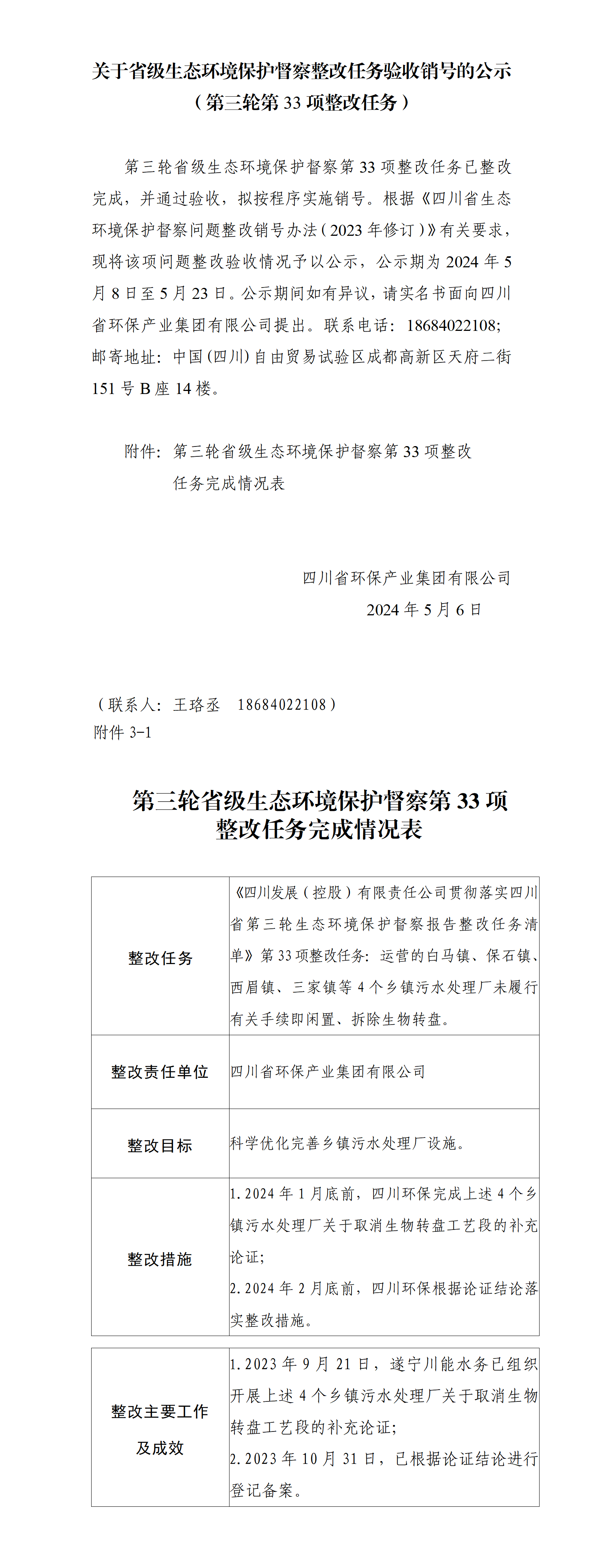 關(guān)于省級生態(tài)環(huán)境保護督察整改任務(wù)驗收銷號的公示 (第三輪第33項整改任務(wù))