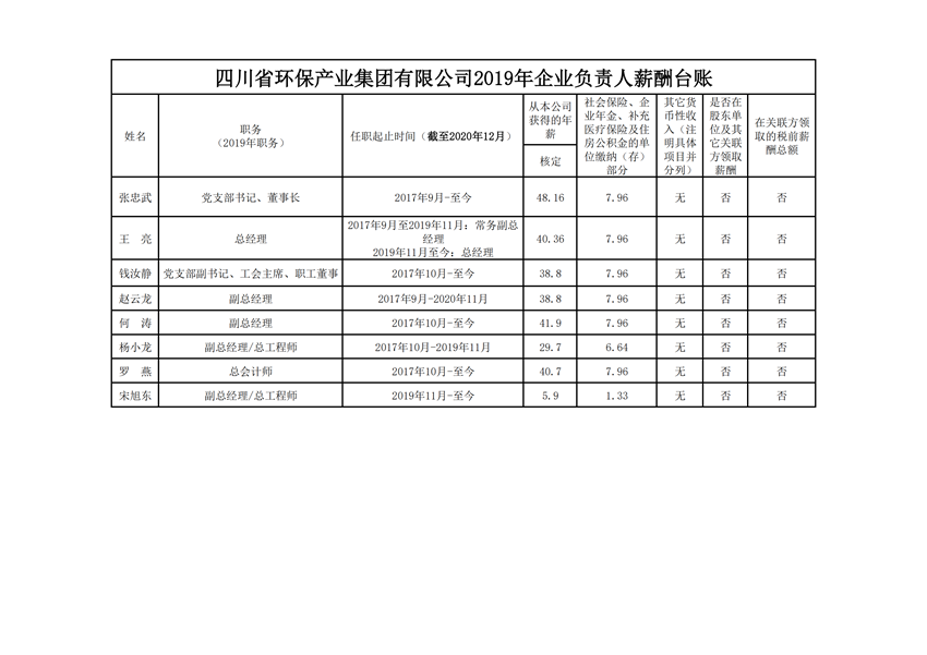 四川省環(huán)保產(chǎn)業(yè)集團有限公司2019年負(fù)責(zé)人薪酬信息公示